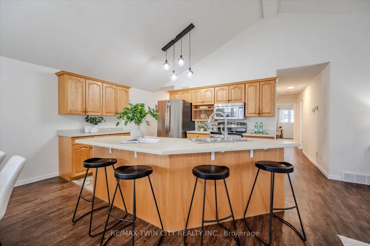 +"PublicRemarks": "OPEN HOUSE SAT FEB 7 - 2:00 - 4:00pm! Charming DETACHED BUNGALOW with SOARING ceiling and TANDEM GARAGE in QUIET ADULT LIFESTYLE community of Martin Grove Village. Open concept layout with double vaulted ceiling and lots of natural light. Central kitchen with island and great counter space. You'll love the separate workspace/beverage area with additional cupboards and countertop. Spacious living room with gas fireplace and lovely windows with California shutters. Large primary bedroom with amazing walk-in closet. Second bedroom with double closet is spacious as well--this room could also be a great office or craft room. Large main floor bathroom has 2 sinks, large vanity, separate shower and amazing premier walk-in tub for your convenience! Main floor laundry with lots of storage and laundry sink. And there's more! Basement has a 3 pc bathroom, plus a finished bonus room which could be nice hobby room, workout area, etc. The rest of the basement provides a huge amount of storage space or so many possibilities for your personal touch. You'll love relaxing or visiting with family and friends on your private back deck--it spans almost the width of the house, has a gas line for barbeque, and lovely open space behind--no back neighbours! Motorcycle or extra stuff? You'll love the extra long garage--can fit 2 small cars tandem, or one large vehicle and lots of extra storage space/workshop, etc. Fantastic location--quiet area, minutes from the St. Jacob's Market, Highway 85, Conestoga Mall and all that Waterloo has to offer! Low overall cost of living and live in style! Come see this hidden gem!"