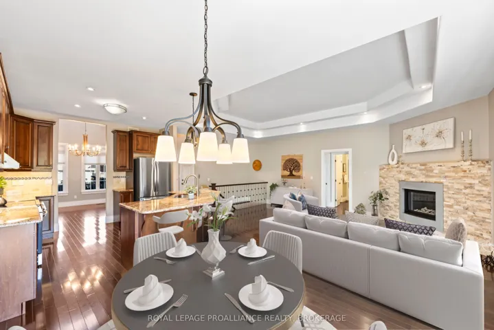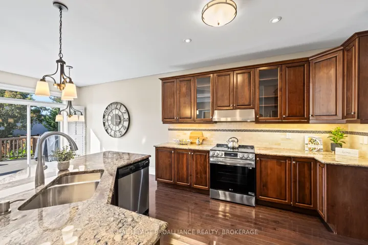 +"PublicRemarks": "Nestled on a beautifully landscaped lot in the coveted Lyndenwood neighbourhood, 1213Atkinson Street blends timeless curb appeal with custom craftsmanship and thoughtful modern updates. This Haynes-built home is a rare gem-designed to impress while delivering everyday comfort. From the all-brick, stone, and stucco exterior to the stunning new stone walkway and lush front gardens, this home makes a striking first impression. Step inside to soaring ceilings, elegant pillars, and rich hardwood floors. A formal dining room with vaulted ceilings serves as an elegant lounge-a perfect space to unwind with guests, enjoy evening cocktails, or curl up with a good book. This room's versatility allows it to easily convert to a formal dining function or continue as a cozy yet upscale entertaining area. The heart of the home is the spacious open-concept kitchen, living, and dining area. Granite countertops, warm custom cabinetry, and a large island invite gathering, while the gas fireplace and coffered ceilings add charm and character. Walk out to the private, fenced backyard where the lilac blooms and the carefully curated landscaping frame the natural gas BBQ area and deck-ideal for summer evenings at home. The main level offers a serene primary bedroom with a walk-in closet and convenient ensuite, plus a second bedroom and full bath; these are separated from the living room by a custom pocket door for added privacy. Main-floor laundry adds everyday convenience. Downstairs, the fully finished lower level is its own retreat-featuring a massive rec room, two additional bedrooms, a workout area, and another full bathroom, perfect for guests or teens. With approximately 2,500 sqft of finished living space, recent upgrades include designer lighting and enhanced landscaping in both front and back yards. This home offers upscale comfort in one of Kingston's most central and convenient communities."