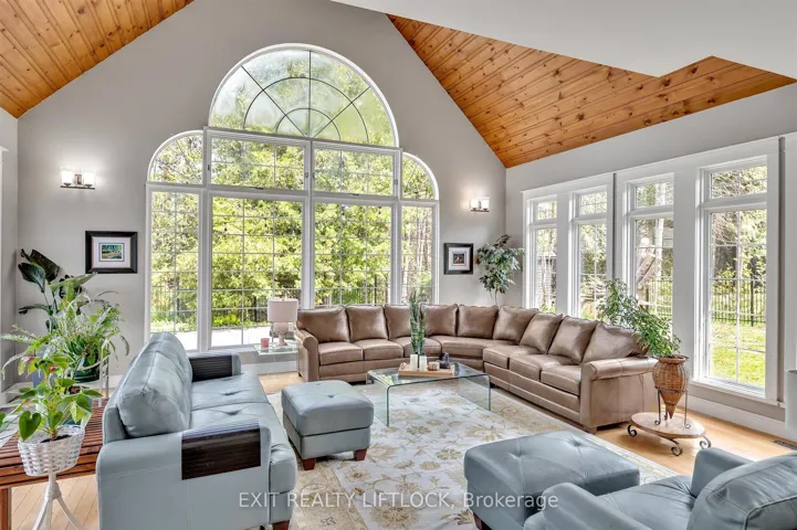+"PublicRemarks": "This home has many appealing features, such as an entertainers kitchen with island that overlooks the living room with a bank of windows, a family room with vaulted ceilings and could easily fit a pool table, large primary bedroom with a Juliet balcony. 4934 square feet of interior living space. There are walkouts to the patio and pool area and a screened in gazebo. The outside of the home has a fenced in front and back yards just in case you want to give your dogs a choice. The property is just under 4 acres with walking trails and is next to Crown land. Also a bonus detached 2 car garage/workshop. You have great privacy, but can get to town in minutes. Pre inspection available."