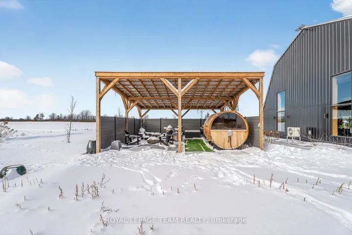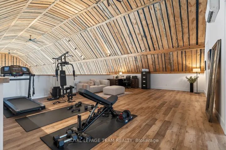 +"PublicRemarks": "Unforgettable! A rare and remarkable barndominium offering monumental scale, moody elegance, and undeniable architectural presence. This extraordinary home reimagines barn chic through contemporary design, featuring a breathtaking Great Room with soaring domed ceiling, rich wood detailing, and dramatic lighting that create a cathedral-like atmosphere. The kitchen is striking and refined, with sleek black cabinetry, gold hardware, and a large island with farmhouse sink. The Great Room also features a chic bar, wood-burning stove, and oversized garage-style doors for flexible indoor-outdoor flow. For luxurious rest: the main-level primary offers privacy and comfort, while a loft, two additional bedrooms, and beautifully finished full bath complete the upper level. A truly once-in-a-lifetime residential rental opportunity."