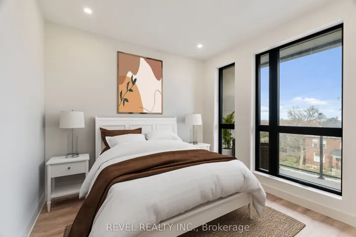 +"PublicRemarks": "Experience modern living at The Madera with assigned secured/heated parking, smart home technology, and instant high-speed internet (included in rate from Cogeco) throughout the building. This pet-friendly community offers a safe and welcoming environment for those tenants seeking an upgraded lifestyle. This development offers modern interiors featuring luxury vinyl tile (LVT) in the foyer, kitchen, and living areas, with ceramic tile bathroom floors and tub/shower surrounds. Floor-to-ceiling windows, private balconies, and in-suite laundry are included in every unit, with two-bedroom layouts offering a tub in the main bath and a stand-up shower in the ensuite. Kitchens are equipped with large islands and quartz countertops, custom soft-close cabinetry, polished quartz counters with under mount stainless steel sinks and pull-down faucets, tiled backsplashes, under cabinet LED lighting, and a full stainless steel appliance package including dishwasher and microwave. Mechanical and plumbing features include air-source VRF heating and cooling, ERVs in each unit, modern plumbing fixtures, domestic hot water provided by an air-source heat pump, and a high-efficiency electric water heater. The building is finished with pot lights throughout, stylish flush-mount fixtures in living/dining areas and bedrooms, a TV-ready living room wall, and energy-efficient LED lighting across all common and private spaces."