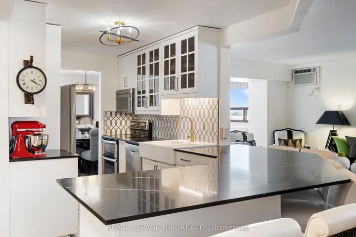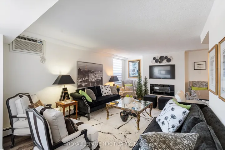 +"PublicRemarks": "Style, Space & Affordability. This spacious 1400+ sq ft condo has numerous features that will check all the boxes for the discerning buyer. Having only 4 units on each floor gives the complex that exquisite boutique hotel feel. This corner unit offers two large bedrooms, (primary bedroom measures 19' x 11 1/2' & has a walk in closet), renovated main bathroom with accessible shower with glass doors, a powder room for guests, formal dining room opens to the extra sitting room where both rooms benefit from an abundance of natural light. Panoramic views can be enjoyed from the many windows of this 6th floor unit. The owner has recently installed a fireplace in the living room adding to the overall ambience of this elegant room. The modern black & white kitchen has newer appliances, open breakfast bar with plenty of seating, stylish ceramic backsplash, Quartz counters and white cabinetry with some glass feature doors. Conveniently located, the utility closet has built in cabinetry perfect for storage of sundries. Improvements throughout include upgraded baseboards, trim, interior passage & closet doors, laminate flooring, built in cabinetry in many areas, custom blinds, etc. Included in the condo fees: hydro, heat, TV, Wifi, parking, laundry, water, common areas & more. Building amenities include: gym, sauna, open deck with use of BBQ, pergolas, outdoor furniture, community gardens, lounge/library, elevator, covered parking & more. Convenient Downtown location is convenient to dining, Performing Arts Centre, Meridian Centre, Farmer's Market, shopping, Hwy access & so much more."