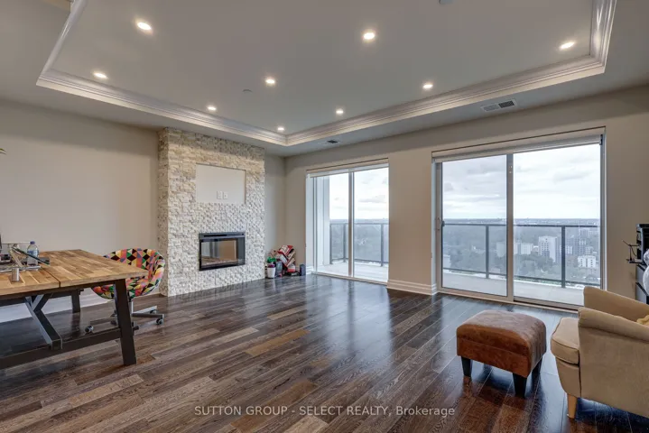 +"PublicRemarks": "Luxury living in the heart of downtown London. This beautifully appointed 1-bedroom + den, 2 full-bathroom condo offers approximately 1,315 sq ft of thoughtfully designed living space, featuring stunning city views, an open-concept layout, and sleek contemporary finishes. Floor-to-ceiling windows fill the space with natural light, while the modern kitchen features quartz countertops, stainless steel appliances, and a breakfast bar-perfect for everyday living and entertaining. Enjoy sunsets from your private balcony and unwind in the spacious primary bedroom with a walk-in closet and private ensuite. The den provides flexible space for a home office or additional living area. In-suite laundry and ample storage add everyday convenience.The building features exceptional amenities, including a rooftop patio with panoramic views, a social lounge, state-of-the-art fitness centre, golf simulator, library, and games area. One underground assigned parking space is included. Tenants only pay hydro-everything else is covered. Conveniently located with Reset Social Cafe on the main level and just steps from Covent Garden Market, Budweiser Gardens, parks, dining, and entertainment, this condo is ideal for professionals seeking a vibrant downtown lifestyle. Lease occupancy available starting March 15,2026."