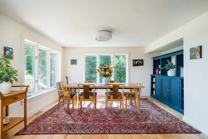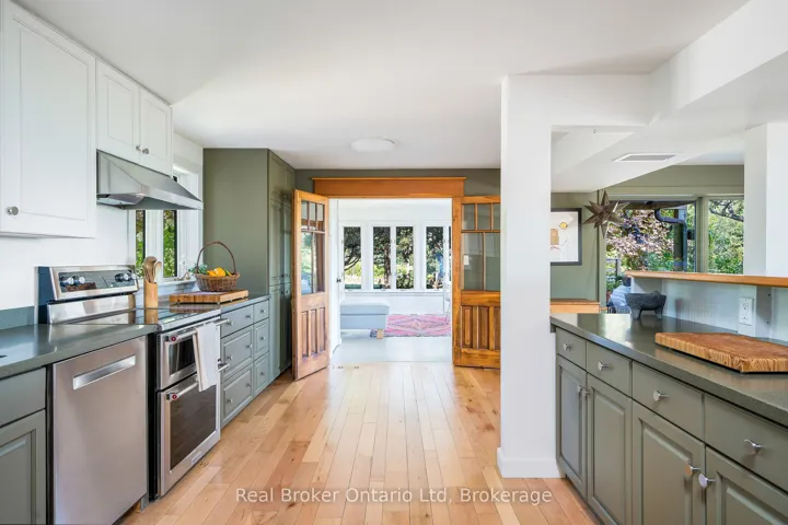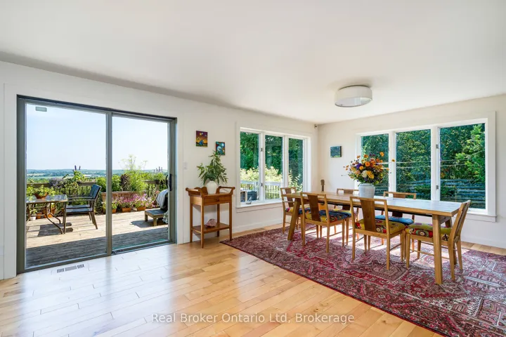 +"PublicRemarks": "The moment you turn in, you can feel it - you've arrived somewhere unlike anywhere else. On a quiet country road, a long winding driveway leads to a secluded retreat. More than sixty acres of fields, rolling hills, fruit trees, and forests unfold in every direction, threaded with private trails to wander. In the distance, the shimmer of Georgian Bay. Sunrises that take your breath away, star-filled skies at night, and views that feel limitless. At the heart of it all is a one-of-a-kind healthy home, lovingly restored using biological building principles and natural, eco-friendly materials. Solid hardwood floors run throughout, and natural light fills every corner of this four-bedroom, four-bathroom home. A wood-burning fireplace anchors the main living space, adding both warmth and atmosphere year-round. The kitchen is spacious and inviting, designed for gathering, while the bathrooms are dreamy in every way. The primary suite is a retreat of its own, complete with a four-piece ensuite, walk-in closet, lounge for relaxing, and a deck overlooking the property - an ideal spot for quiet evenings or comfortably welcoming in-laws and guests. From every room, you'll take in stunning views of the land and valley beyond. In winter, the land becomes your own private playground. Step outside for snowshoeing or Nordic skiing along the property's trails, or spend the day on the slopes at Beaver Valley, Georgian Peaks, and nearby ski hills. Even in the quiet of winter, the views remain expansive and the setting feels deeply peaceful. Practicality meets purpose with geothermal heating and cooling for efficiency, a two-car garage with a built-in workshop, and generous storage throughout. Though it feels worlds away, it's just minutes from Thornbury, Meaford, Georgian Bay, top schools, and local farm stores. It's a home that feels good to live in, inside and out. Simply put, this place is special."