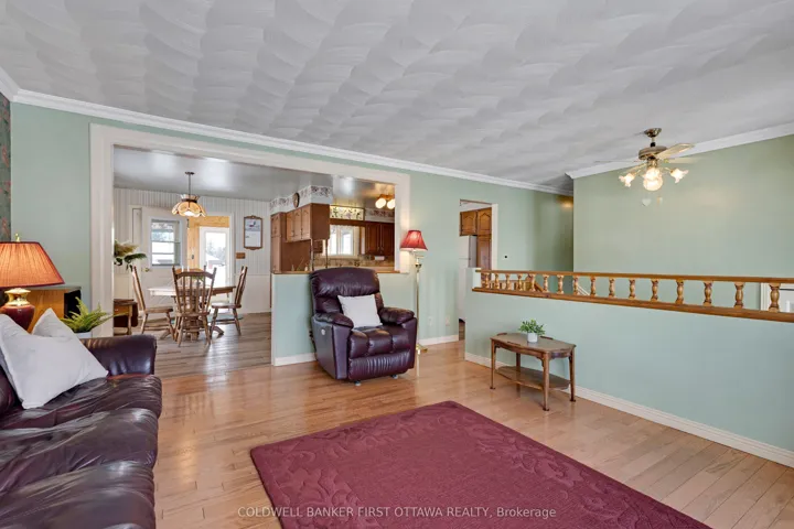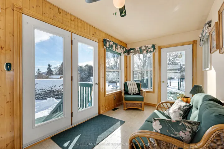 +"PublicRemarks": "Pride of ownership found throughout lovingly maintained country home - that also has natural gas heating. This one-owner home is tucked into lovely landscaped acre, all bordered by manicured mature hedges. Plus, you have two double garages each with hydro. Spacious and bright, the 3+1 bedroom, 2 full bathroom home includes finished lower level with door for easy access to outside. Welcoming front foyer bathed in light from etched glass door, glass side panel and decorative octagon window; foyer also has convenience of a closet. Living room attractive crown moulding, oak flooring and huge window for lots of natural light. Clear sightlines from living room to dining room and kitchen, both which have luxury vinyl floors. Kitchen features wrap-around oak cabinetry, ceramic backsplash and plenty of prep areas. Sun-filled four season sunroom with walls of windows and door to deck for barbequing. Primary bedroom offers large double closet and window overlooking tranquil backyard. Two more good-sized bedrooms, also with large closets. Along with the living room, the hallway and bedrooms also have oak hardwood flooring. The 4-pc bathroom has three closets for extra storage. Lower level family room includes bar area and built-in entertainment centre. Lower level extra-large fourth bedroom plus, 3-pc bathroom and a laundry station with big window. Combined workshop-utility room with efficient woodstove that is currently used to heat the whole home. Or, you have the hi-efficiency gas furnace installed 2015. Home's metal roof 2018. Both garages' metal roofs 2021. Garden shed, woodshed and large coverall with wood doors. Outside outlet for a gas-fired portable generator. Big vegetable garden bed and horse-shoe pit. Property has two paved driveways. Cell service and hi-speed available. On paved township road with garbage/recycling pickup and school bus pickup. Great central location as just 10 mins to either Carleton Place or Smiths Falls; 15 mins Perth and 30 mins Kanata."