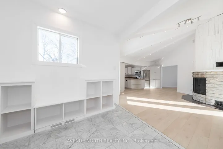 +"PublicRemarks": "Exceptional custom-designed bungalow on Bank Street showcasing luxury, functionality, and privacy on a beautifully landscaped 1.07-acre lot. This 3 bed, 4 bath home features a unique circular layout filled with natural light, connecting the living, dining, and kitchen areas around a striking granite-accented fireplace. The chef's kitchen offers stainless steel appliances, granite countertops, and solid wood cabinetry. The primary suite includes a custom walk-in closet and a spa-like ensuite with a soaker tub, glass shower, and double vanity. Heated bathroom floors, main-floor laundry, and large secondary bedrooms add comfort. The basement with separate entrance and plumbing rough-ins offers potential for a secondary suite. Landscaped grounds, composite deck, and ample parking complete the package. Updates: Water Pump, Tankless Water Heater (2025), Kitchen, Painting, LVF Flooring, Eavestroughs, Trim, Landscaping, Grading, Security, Furnace Blower Fan, Dryer (2024), Roof (2015), Bathrooms (2018), Primary Suite and Custom Closet (2019), Deck, Windows, Furnace (2022). Septic original."