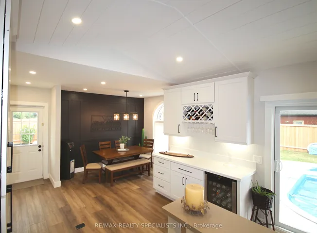 +"PublicRemarks": "Rarely offered corner lot with fully wrap around entertainer's yard featuring an in-ground pool. Located in a highly sought-after enclave, this one-of-a-kind ranch style side-split has been fully renovated with the highest standard of quality finishes. Thoughtful features for the discerning buyer grace this home with it's generous living space boasting high end custom cabinetry and custom wall mouldings throughout. The fully re-modelled kitchen spares no detail; solid wood cabinetry, vaulted shiplap ceiling, quartz counters & backsplash, large servery area with built-in wine rack & bar fridge, custom built-in coffee nook, upgraded stainless appliances & integrated dishwasher! The showstopper yard features a comfortable lounging area overlooking the oversized 18x32ft pool surrounded by a fully landscaped space including interlocked patio, separate pergola retreat and generous storage space with 3 sheds. In addition the exterior has been upgraded with a newly built fence, custom wooden pool deck, driveway (all in 2024) and new garage door (2025). The primary bedroom offers a semi-ensuite including a built in storage/laundry machine configuration, plus a separate oversized dressing/sitting room with wall-to-wall cabinetry (previously a 3rd bedroom which can easily be converted back if desired). Basement unit is accessed through it's own gate with back entry door and features a separate private yard space for privacy between occupants of the main and lower levels! Lower level unit is a versatile and airy 2 bedroom basement, with an open concept office, large custom kitchen, laundry area & 3pc bath which is currently rented month to month with AAA tenant who would like to stay."