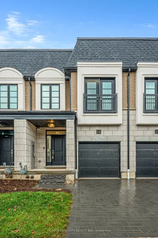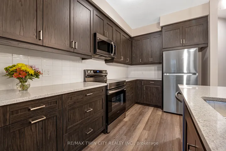 +"PublicRemarks": "Welcome to Unit 24 at The Vineyard Townhomes, a refined French-inspired community ideally located on Elgin Street North. Designed with timeless architectural details including elegant stonework, arched rooflines, and sleek black accents, this residence offers a rare blend of style, comfort, and privacy. Positioned near mature trees, the home enjoys a peaceful backdrop seldom found in townhome living. Step inside to discover 9-foot ceilings, wide plank flooring, and abundant natural light throughout the main level. The thoughtfully designed open-concept layout creates a seamless connection between living, dining, and kitchen spaces, ideal for both everyday living and entertaining. The kitchen features stone countertops, a generous island with seating, crown moulding on cabinetry, tile backsplash, under-cabinet lighting, and an undermount stainless-steel sink, combining function with modern sophistication. Adjacent dining and living areas are bright and inviting, with large windows and a walkout overlooking the treed outdoor setting. The upper level offers a well-appointed primary suite with room for a king-size bed, a walk-in closet, and a private ensuite complete with a rain shower and pressure-balanced fixtures. Two additional bedrooms provide flexibility for family, guests, or a home office, while second-floor laundry adds everyday convenience. The unfinished basement offers excellent future potential for additional living space, a recreation area, or storage. Built with efficiency and long-term value in mind, features include triple-glazed energy-efficient windows, a 30-year asphalt shingle roof, R-60 attic insulation, ERV system, smart programmable thermostat, insulated garage door, poured concrete porch, fully sodded lot, 100-amp electrical service, gas-fired rental hot water heater, and two exterior water taps. Conveniently located minutes from parks, schools, shopping, transit, and with easy access to Highway 401 and Highway 8. *Virtually staged*."