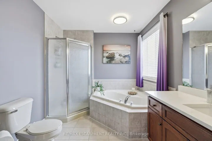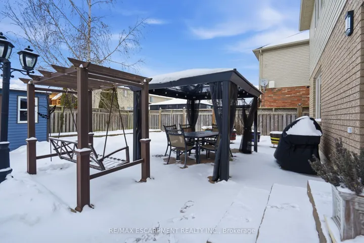 +"PublicRemarks": "This John Bruce Robinson quality-built home is located on a wide, quiet, tree-lined street in one of Binbrook's established neighbourhoods. The exterior includes an interlock stone driveway with front, side, and rear walkways, landscaped gardens, a gazebo, shed, raspberry bushes, a vegetable garden, and a natural gas garage heater. The main floor offers a functional layout with a separate dining room featuring a feature wall, a living room with gas fireplace and feature wall, an eat-in kitchen with quartz countertops, backsplash, and backyard access, as well as a main-floor laundry room and 2-piece bath. The upper level includes three bedrooms, with the primary bedroom featuring a walk-in closet and 4-piece ensuite, while the secondary bedroom also includes a walk-in closet and quartz countertops in all upper-level bathrooms. The finished basement provides additional living space with a second kitchen, 2-piece bathroom, storage areas, and flexible rooms, and the home is carpet-free with hardwood, tile, laminate, engineered flooring and fresh paint. With proximity to parks, schools, shopping, conservation areas, and the Centennial GO Station."