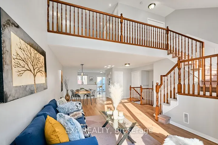 +"PublicRemarks": "Set in the heart of vibrant Barrhaven, this home places you just steps from the MARKETPLACE, with SHOPPING, GROCERIES, RESTAURANTS, BANKS, and the PARK AND RIDE all within easy walking distance. Bathed in SOUTHERN LIGHT and thoughtfully REIMAGINED from top to bottom, the OPEN-TO-ABOVE LIVING ROOM immediately sets the tone, featuring beautiful CATHEDRAL CEILINGS, FLOOR-TO-CEILING WINDOWS, and clear views of the UPSTAIRS LOFT and entire MAIN FLOOR. This visual connection between levels makes the home feel bigger, brighter, and effortlessly inviting. Sunlight flows seamlessly into the MAIN FLOOR, where brand new FLOORS lead to a completely redesigned KITCHEN with FOREST GREEN CABINETRY, warm NATURAL WOOD TONES, and six BRAND NEW APPLIANCES, creating a space that is both modern and welcoming. The WAINSCOTED STAIRCASE draws you upstairs with character and continuity, complemented by NEW LIGHTING and UPDATED BATH FIXTURES, while two well-proportioned BEDROOMS provide comfortable, flexible retreats. Close to SCHOOLS, PARKS, TRAILS, and every essential AMENITY, this home truly MUST BE SEEN TO BE APPRECIATED."