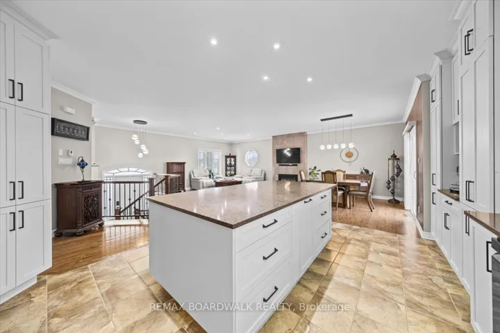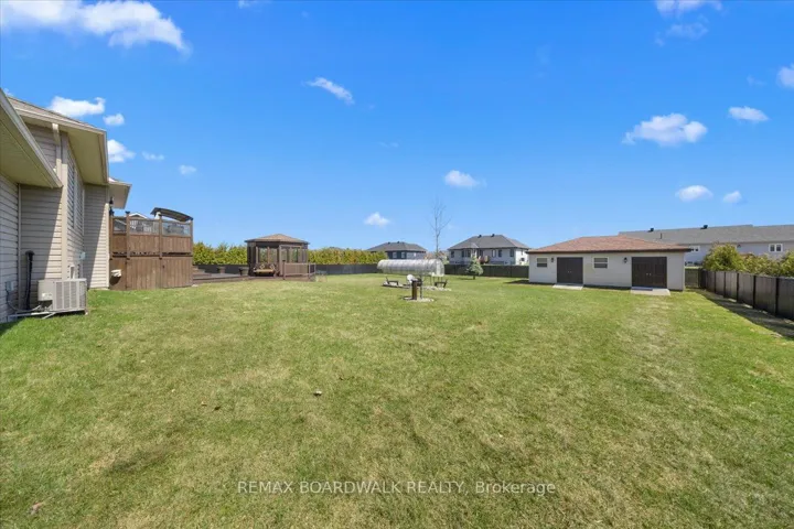 +"PublicRemarks": "Quiet Neighbourhood. Small-Town Feel. Big-Time Comfort. This beautifully finished home offers timeless style, thoughtful upgrades, and exceptional living space in a peaceful, family-friendly setting. Step into the tiled front foyer featuring oversized 24" tiles, a convenient entry closet, and a striking hardwood staircase accented with elegant wrought iron spindles. Rich hardwood flooring flows throughout the main level, complemented by crown moulding and pot lights for a warm, upscale feel. The open-concept living, dining, and entertainment area is anchored by a cozy gas fireplace with a stylish tile surround perfect for everyday living and hosting. The updated kitchen is a standout, designed with both function & style in mind. Enjoy a large centre island, stainless steel appliances, a gas range with pot filler, a deep stainless steel sink, a dedicated coffee bar, and an abundance of pot drawers for optimal storage. The spacious primary bedroom features crown moulding, dual closets, and a luxurious ensuite complete w/double walk-in shower and dual sinks. Two additional well-sized bedrooms offer ample closet space and share a bright five-piece bathroom with dual sinks and a one-piece tub/shower. The main level has 9-foot ceilings, enhancing the sense of space and light throughout. The fully finished lower level offers large windows, pot lights, and a versatile rec room ideal for movie nights or relaxing with family. A fourth bedroom, a large laundry rm, a utility rm, and an updated 3-piece bathroom provide added convenience. The recreation area is perfect for a home gym or optional secondary living space, with a bonus: a staircase leading directly from the basement to the garage. The extra-large, deep garage offers exceptional storage and functionality. Step outside to a fully fenced backyard oasis featuring a two-tier deck, a large gazebo, an outdoor fire pit with an interlock surround, a detached outbuilding ideal for storage, a workshop, or a hobby space."