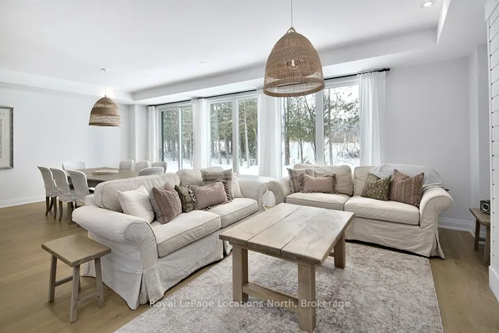 +"PublicRemarks": "Welcome to The Enclave in the coveted Lora Bay community, one of the area's most sought-after four-season destinations. This refined end-unit residence offers a thoughtful blend of elevated design, modern convenience, & effortless lifestyle living. From the moment you enter, you'll appreciate the airy 9-foot ceilings on both the main & upper levels, wide-plank engineered hardwood floors throughout, & a solid oak staircase that brings warmth & architectural interest to the home. The main level is designed for both everyday living & entertaining, featuring a bright open-concept layout anchored by a gas fireplace in the living area. The space flows seamlessly into the dining area & a beautifully appointed kitchen, where custom cabinetry, quartz countertops, an oversized island, a generous pantry, & a high-end appliance package create a true chef's workspace. Upstairs, two well-proportioned guest bedrooms feature Georgian Bay Views that share a stylish 3pc bath. The primary retreat is a peaceful sanctuary, showcasing western-facing sunset views over the golf course & a spa-like 5pc ensuite designed for relaxation. The unfinished lower level offers endless possibilities to suit your needs - envision a home gym, media room, guest accommodations, or simply abundant storage for bikes, skis, paddleboards, & all the gear that comes with an active four-season lifestyle. A single-car garage with convenient in-home access provides secure parking for one vehicle, while plentiful visitor parking throughout the community ensures ease for guests. Living in Lora Bay means more than just owning a beautiful home - it's about belonging to a vibrant community. Residents enjoy exclusive access to a private beach along the crystal shores of Georgian Bay, a modern fitness centre, and an elegant clubhouse. Spend time perfecting your swing on the championship 18-hole golf course, practicing on the Track Man simulator, or connecting with neighbours at one of the many social events."