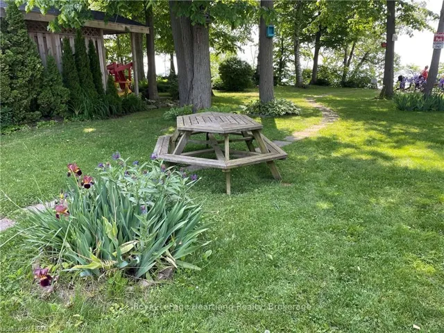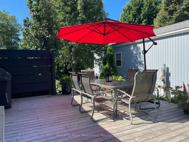 +"PublicRemarks": "Welcome to this affordable, well maintained home located in Northwood Beach Resort, 55+ adult lifestyle community. Minutes from the Village of Bayfield where you will find great restaurants, shopping, marina, sandy beaches & a golf course right across the road. This up-to-date home has a spacious entrance/sitting area with a new gas fireplace, a bright eat-in kitchen that opens to a cozy living room. The primary bedroom with built-in cabinets, a large clothes closet and patio doors that lead to a large deck is a great spot for morning coffee. A second bedroom also opens to the deck, doubles as a functional storage room with an optional built-in single bed, great for an overnight guest. The lovely backyard is lined with mature trees ensuring privacy, perennial gardens surround the brand new grey concrete slate walkway and the new black privacy fence on the large deck is the perfect space for summer entertaining. A new 10'x12' insulated shed with electricity and an extra garden shed provides plenty of storage. Northwood Beach offers a beautiful updated community centre, large outdoor pool & amazing sunsets at the lakeside park. If downsizing, low maintenance & lakeside living are what you are looking for, this is the home for you!"