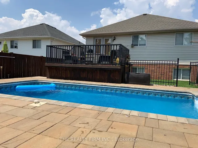 +"PublicRemarks": "Welcome to 55 Queensway Drive in Strathroy, a meticulously maintained raised ranch. Offering 3+1 bedrooms and 2 bathrooms, this home is set in a family-friendly neighbourhood and reflects true pride of ownership throughout. The main floor features a bright living room with hardwood floors and an inviting layout. The kitchen is both functional and stylish with ample cherry cabinetry, stainless steel appliances, quartz countertops, an island, and breakfast bar, making it ideal for everyday living and entertaining. The adjoining dining room includes sliding patio doors that lead to the back deck, perfectly positioned to overlook the pool and backyard. Three spacious bedrooms complete the main level, including a primary bedroom with cheater access to the main bathroom. The lower level continues with hardwood flooring and offers a comfortable living room with a fireplace, an additional bedroom or home office with French doors, and 3-piece bathroom, creating a flexible space. A large laundry room adds exceptional functionality with built-in shelving, counter space, and plenty of storage. Outside, the backyard steals the show with green space, a 12x24 heated saltwater pool, generous concrete patio space for sun loungers and entertaining, and a pool house, creating a space designed for summer days and effortless outdoor living. Additional highlights include an insulated double car garage, owned hot water heater, and numerous updates: new concrete sidewalks and driveway (2024), air conditioner (2022), front door and garage door (2021), and roof (2020). Ideally located in a sought-after area close to schools, parks, golf, shopping, and more, this well-cared-for home offers comfort, functionality, and a setting that truly feels like home."