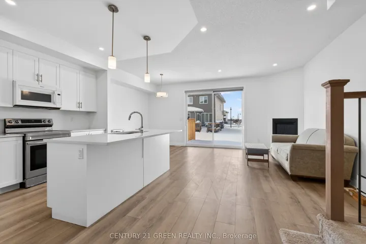 +"PublicRemarks": "Beautifully Built Caraco Freehold Townhome Built on Large Corner Lot in Prestigious Woodhaven Area Offers 1525 square feet Above Ground of Living Space with 3 Bedrooms, 2.5 Washrooms and an impressive list of Features including Ceramic Tile Foyer plus Laminate Floor on Main Floor and a 9FT Ceiling on Main Floor. Upgraded Kitchen with Large Centre Island, Quartz Counter tops , Walk In Pantry , Pot Lighting & Built In Microwave , Bright and open Living Room with corner Gas Fireplace, POT Lighting and a Patio Door to Rear Yard. 3 Spacious Bedrooms on second floor including the Primary Bedroom with Walk In closet and 4 PC Ensuite Bathroom. Main Floor Laundry Room. Standard High Efficiency Furnace and Basement Bathroom Rough-In . Just Steps to Future Parks and Schools"