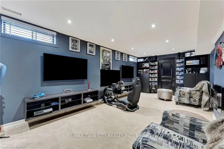 +"PublicRemarks": "Welcome to 1 Bowen Lane, a show-stopping 4-bedroom, 3-bathroom home on a premium corner lot in the heart of West Brant. Offering over 3,800 sq ft of finished living space, this beautifully maintained home delivers space, style, and standout features at every turn. The main level is designed for both everyday living and effortless entertaining, featuring a spacious kitchen with abundant counter space and a charming breakfast nook-perfect for morning routines or hosting lively gatherings. Two expansive living rooms, including one with a cozy fireplace, plus a formal dining area, provide exceptional flexibility for families and entertainers alike. Upstairs, you'll find three generously sized bedrooms, highlighted by a private primary retreat complete with a walk-in closet and ensuite bathroom. Downstairs, the fully finished basement truly elevates the home, offering a dedicated movie theatre, billiards room, exercise space, and office-your own all-in-one entertainment and work-from-home haven. Step outside to a beautifully landscaped, private backyard featuring a stamped concrete patio, vinyl fencing, and plenty of space to relax or entertain. An interlock double-wide driveway, ample storage throughout, and a heated garage add to the home's everyday convenience. Ideally located close to schools, parks, shopping, and dining, this exceptional property is move-in ready and not to be missed. Book your showing today-before someone else does."