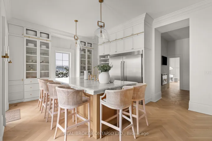+"PublicRemarks": "The Sills/Hepburn House (1859) is a rare Main Street landmark, meticulously restored with respect for its original character while elevating everyday living. Crafted in stone and crowned by a Belvedere, this distinguished residence offers a private lookout above Picton Harbour-extraordinary, ever-changing views that simply can't be recreated. Set on nearly an acre in the heart of downtown Picton, the property feels both central and surprisingly secluded. Its position anchors the streetscape and commands the harbour with an effortless coastal ease-French Riviera in spirit, yet grounded in authentic County heritage. Inside, period integrity meets modern function. High ceilings, oak floors, custom millwork, original stained glass, and a grand staircase with sconce lighting create a warm, elevated atmosphere. Picture windows frame the marina and lake beyond. The main level is designed for gathering and entertaining with inviting living spaces around a fireplace, a formal dining room, built-in benches and display cabinetry, and a bar area. The kitchen features a centre island, breakfast bar, and premium appliances.Upstairs, four impressive bedrooms each offer a private ensuite and beautiful vistas. The primary suite is a true retreat with a luxury-hotel feel. Practical details include a laundry room with a sitting/coffee station. Outdoor living extends to a terrace overlooking the marina.The finished basmnt adds flexible space for a gym, media room, or rec area. Outside, landscaped grounds, glass fencing, a gazebo, and an inviting terrace create a private backdrop for quiet relaxation or memorable celebrations. An oversized driveway and detached garage with workshop space complete this exceptional offering-ideal as a legacy residence, an elevated home, or a strategic investment in one of The County's most walkable locations."