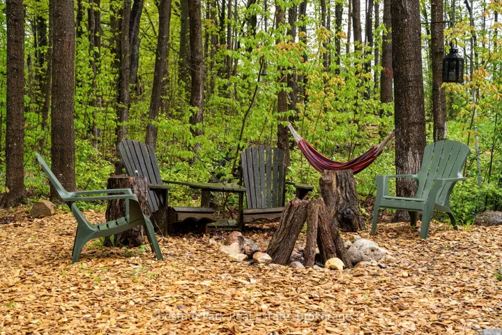 +"PublicRemarks": "Escape to nature without sacrificing comfort. Set on 10 private acres in desirable Holland Centre, this impeccably built 3-bedroom, 2-bath bungalow (3rd bedroom showing as family room) offers over 2,100 square feet of luxurious, single-level living. Constructed in 2020 by a custom home builder for personal use, the quality is evident in every detail-engineered oak flooring, Italian porcelain tile, designer fixtures (Brizo, Kohler, Hansgrohe), high-end lighting, and built-in Klipsch ceiling speakers throughout. The chef-inspired kitchen features premium appliances, a central island, and a 10' peninsula-perfect for entertaining while enjoying views of the forest. Dust-free, in-floor radiant heating backed up by ductless heating/cooling, triple-pane windows, R34 walls, R70 attic insulation, and a 50-year roof ensure year-round comfort and efficiency. Starlink high-speed internet keeps you connected. Outdoors, relax in the hot tub, entertain in the courtyard, or unwind beside the lovely ground-fed, aerated pond-a peaceful focal point that offers tranquil water views in summer and skating in the winter. The landscaped gardens, cobblestone drive, wooded trails, and firepit make this a true four-season retreat. Wildlife is abundant, and the property includes space for guests with trailer or tent parking near the pond. Enjoy the peace and privacy of rural living with the convenience of nearby amenities: 12 minutes to Markdale (with new hospital and school), 35 minutes to Owen Sound and Blue Mountain, and just over an hour from Highway 9. Whether you're looking for a full-time residence or a weekend escape, this home delivers exceptional quality, comfort, and a rare connection to nature."
