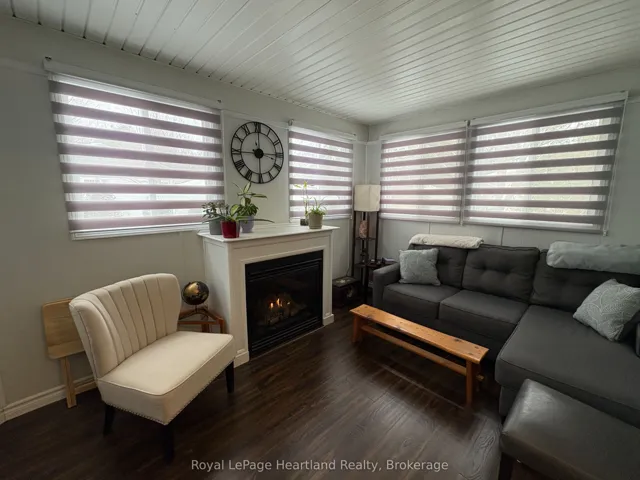 +"PublicRemarks": "Privacy + garage, mature trees, 2 bedrooms, 2 bathrooms & 2 living areas! Welcome to 15 Huron Lane in the land lease 55+ "lakefront" community at Meneset on the Lake. From the curbside you are drawn to this immaculately kept home with updates galore over the past number of years. The lush green mature trees and perennials showcase this sweet home beautifully. Privacy is ensured in the backyard large patio area, low maintenance gardens line the property and a second entrance into the den is a lovely feature. Park your vehicles on the paved driveway in front of the single car detached garage which is insulated and has electricity. The covered porch entrance greets you into the foyer of the home and the large naturally lit spacious living room. Off to the side of the living room is the crisp white kitchen with stainless steel appliances & loaded with cupboards and countertop space for food preparation. The dining room easily accommodates a dining & side table overlooking the front yard. Laundry, water softener (rented), water heater (owned) & furnace are tucked in the hallway closets leading to the cozy den. Morning coffee or evenings filled with relaxation are guaranteed in front of the natural gas fireplace and out of the way of the main part of the home. Guests are welcome to stay in the second bedroom with a large closet, new flooring and beautifully painted walls. Across the hall is the 4 piece main bathroom with new vanity, toilet, flooring and tub/shower. At the back of the home is a large primary bedroom with 9' closet and 3 piece ensuite with new vanity, shower, toilet and flooring. Other updates include the entire home has been painted from front to back including kitchen cabinetry, ceramic backsplash, new plumbing lines & flooring throughout. Join in activities at the active clubhouse, stroll or drive to Meneset's private beach, walk the numerous trails or play a game of bocce ball. Meneset on the Lake has it all! Minutes to golf, Goderich & Lake Huron!"