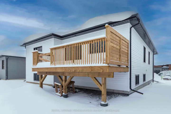 +"PublicRemarks": "It's a Buyers Market - no surprise. Lock in the low price now! This high quality home is Almost 1400 sq ft This plan has two beds and two baths with potential for two additional bedrooms down plus a third bath down if needed. The home, with 9 foot ceilings, will have a stunning kitchen with cabinets to the ceiling and crown moulding, island, & quality countertops, ensuite bath with glass/tile shower, finished laundry room with lower level landing, large deck with built-in bluetooth speakers, covered porch, double garage, paved driveway, interlock sidewalk, sodded lawn with no neighbours behind. Located in the very popular Orchard Lane subdivision with only single family detached homes with its own park. 10 minutes or less to CFB Trenton, Marina, Walmart, Golf Course, 401 & the Trent Severn Waterway. Lock in the low price now!"