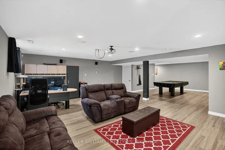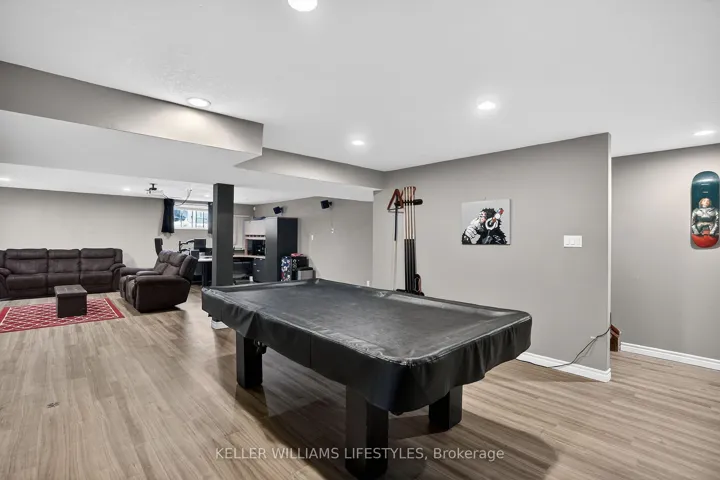 +"PublicRemarks": "Welcome to this well-located townhouse, offering comfort, convenience, and space for the whole family. Situated with quick access to Highway 401 and close to a wide range of shopping and everyday amenities, this home is perfectly positioned for busy lifestyles. The neighbourhood features several school options, trails and nearby parks, making it an excellent choice for families. Inside, you'll appreciate the rare main floor primary bedroom and laundry for easy living, along with a bright kitchen that walks out to a private deck-ideal for morning coffee or summer BBQs. The lower level boasts a huge recreation room complete with a pool table and projector entertainment system with 7.1 surround speakers, creating the perfect space for entertaining, game nights, or relaxing with friends and family. This is a fantastic opportunity to own a spacious and well-designed home in a highly convenient location."