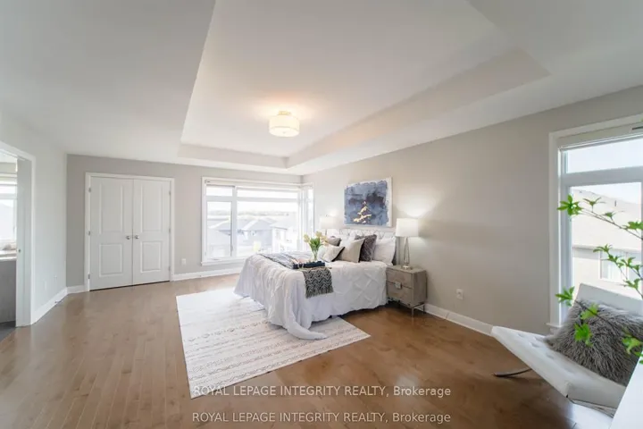 +"PublicRemarks": "Detached home in Richardson Ridge built in 2019 by Uniform. WALK-OUT BASEMENT! TWO ENSUITES! Situated on a fan-shaped lot with a backyard measuring 43.88 ft wide, this home combines modern design with functional living. Enjoy a welcoming front porch, a bright and spacious tiled foyer, and a mudroom with a walk-in closet and powder room. The main level features 9' smooth ceilings, natural oak hardwood floors, quartz countertops, and abundant pot lights throughout. A main-level den is ideal for professionals working from home. The open-concept living and dining area includes a gas fireplace, TV wall mount, and a large southwest-facing window overlooking the backyard. The modern kitchen offers a large island, tile backsplash, walk-in pantry, undermount stainless steel double sink, and premium stainless steel appliances. Smart cabinetry with seasoning racks and a hidden trash bin ensures a clean, functional space. The patio door opens to the deck. Upstairs boasts four spacious bedrooms, including a primary suite with a coffered ceiling, walk-in closet, and luxurious 5-piece ensuite. An upgraded floor plan adds a second bedroom with its own ensuite plus a shared 3-piece bath with direct access from another bedroom. The walk-out basement includes a 3-piece rough-in, ready for future customization. Located within top school boundaries and close to shopping, parks, and transit - this home offers luxury, functionality, and convenience all in one."