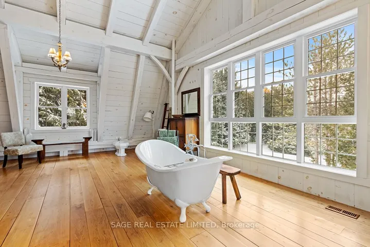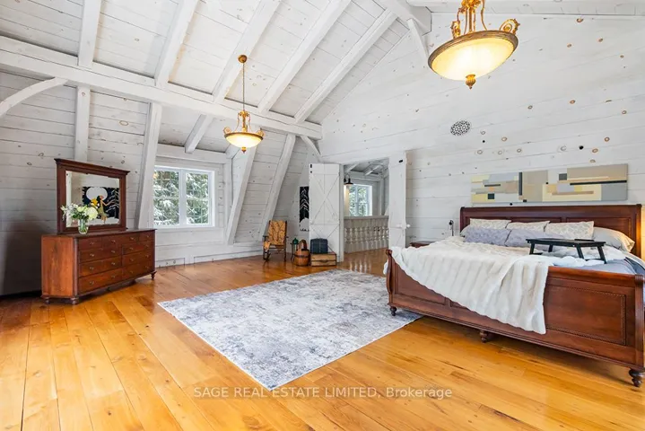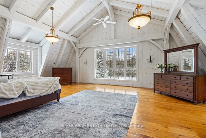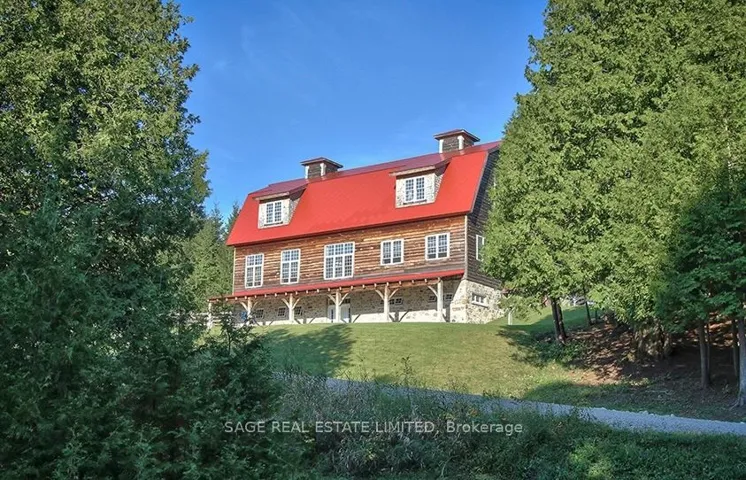 +"PublicRemarks": "Imagine yourself arriving at your private country hideaway. You enter the gate and follow a winding, forested lane, crossing a gentle stream and passing a spring-fed swimming pond that guides you to your personal retreat. Leave the stress of the day at the roadside-you have arrived home.You are drawn to the striking post-and-beam residence, designed and built by master craftspeople who brought this dream home to life with uncompromising quality and extraordinary attention to detail.As you approach the front entrance, you're greeted by stunning stonework crafted from local aggregate. Step inside, and a limestone and pine entry hall envelops you in warmth and character. This level offers immediate access to two spacious rooms, a spa-like bathroom, a custom-finished walk-in coat closet, pantry, laundry, and utility spaces-each thoughtfully designed for both beauty and function.A solid wood staircase leads to the sun-drenched great room, where soaring 30-foot ceilings and panoramic views overlook your secluded forested estate. An exquisite marble fireplace invites you to linger, while the open-concept living and dining areas flow effortlessly, offering endless possibilities for creating inviting and intimate spaces.The bespoke grand kitchen is equally suited for large gatherings or quiet evenings at home. With ample space for multiple cooks, it features custom-built cabinetry, granite and live-edge countertops, premium appliances, and a sprawling natural wood island-each element showcasing the impeccable craftsmanship found throughout the home.The uppermost level is a private sanctuary-the pinnacle of space, comfort, and tranquility. The expansive primary bedroom and moon-lit bath offer a serene retreat, where you can see out, yet remain entirely unseen.All of this is beautifully encapsulated beneath a crimson red gambrel roof, complemented by classic shiplap pine cladding-an unforgettable country estate that feels both timeless and deeply personal. MPAC - 3388 SQ FT"