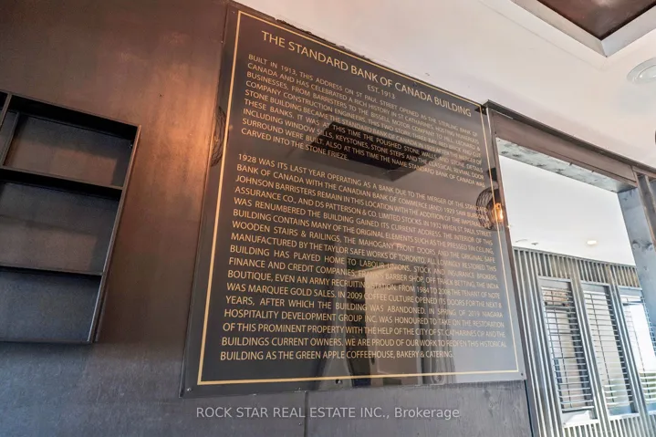 +"PublicRemarks": "An exceptional leasing opportunity in the heart of downtown St. Catharines, offering unmatched character, visibility, and flexibility in a well-maintained historic two-storey commercial building. Originally constructed as a turn-of-the-century bank, the property features a striking open-concept main floor with high ceilings, excellent natural light, gas fireplace, bar and island area, ample cabinetry, appliances included, a two-piece washroom, and distinctive architectural details including the original bank vault. The space has previously operated as both a café and pizza restaurant and is well suited for food and beverage use, including the potential to open a restaurant or pizzeria, with a wood-burning oven in place and existing furniture such as tables and chairs. The second floor provides additional flexible usable space ideal for offices, meeting rooms, creative or event-style use and includes two two-piece washrooms, a separate shower room with sink, a kitchenette, and multiple storage areas. A full basement offers additional storage and utility space, one parking space is included at the rear, and the property is ideally located just steps from the Meridian Centre, First Ontario Performing Arts Centre, and the downtown core's shops, restaurants, and amenities."