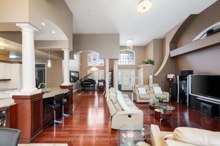 +"PublicRemarks": "Welcome to 7 Edwin Drive, a remarkable residence where upscale living, exceptional space, and multi-generational design come together in the highly coveted Highland neighborhood of South London. Properties in this prestigious community rarely become available, making this an opportunity not to be missed. From the moment you enter, this home makes a lasting impression: soaring 15-foot ceilings with crown moulding, grand ornate chandeliers, elegant marble kitchen finishes and original cherry Brazilian hardwood floors that flow throughout the main level. Thoughtfully designed for both comfort and versatility, this home offers three bedrooms on them main floor, two bedrooms on the lower level, full bathrooms, kitchens, gas fire place and jacuzzi tub on each level. The main bedroom comes with his and hers walk-in closets and ensuite. The renovated lower level is completely separate, features engineered hardwood floors, legal-sized windows, spacious living area with 120 inch screen projector and sound system making it ideal for entertaining or extended family dual-household living. The extra large double-car garage, with access to both the main floor and lower level provides valuable ease for day-to-day convenience. Outside, the property transforms into a private retreat. The backyard features two tranquil ponds, gas lines ready for outdoor heaters, and spacious deck perfect for summer barbecues. Mature landscaping and a serene setting create the perfect space to unwind. Situated on a quiet corner lot and just moments from shopping, golf courses, public amenities and more, this home offers not only comfort but an elevated lifestyle in one of London's most desirable neighborhoods."