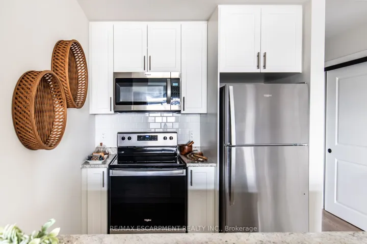 +"PublicRemarks": "Spacious 2-bedroom + den suite at 870 Queenston Road offering oversized layouts designed for real living. Thoughtfully planned with generous living and kitchen areas, walk-in closets, in-suite laundry, and private balconies with panoramic views. The kitchen boasts brand new stainless steel appliances (fridge/freezer, over-the-range microwave, and dishwasher). All floor plans include additional den or flex space ideal for a home office. Modern finishes throughout with quality craftsmanship and ample storage. Professionally managed building with fitness centre, bike storage, pet wash station. Geothermal heating and cooling is included in your rate. Convenient Stoney Creek location close to shopping, schools, transit, and major highways. Ideal for families or professionals seeking space without compromise."