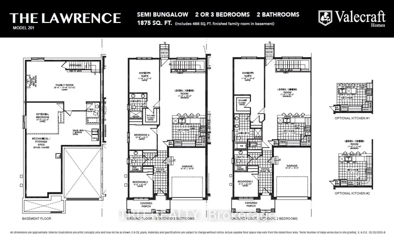 +"PublicRemarks": "Welcome to The Lawrence, a beautifully designed semi-detached bungalow in the stunning new Merkley Oaks community of Iroquois. This home offers the perfect blend of comfort, functionality, and easy main-floor living. The open-concept layout is filled with natural light, highlighted by a rear wall of windows that creates a bright and inviting living space. The main level features 2, ideal for downsizers, retirees, or those seeking single-level living. The finished basement family room, bedroom and 3pc bathroom provides a fantastic additional living space-perfect for guests, hobbies, or extended family. A 1+ car garage and central air conditioning add everyday convenience and comfort. Thoughtfully designed with flexibility in mind, The Lawrence is well suited for a relaxed lifestyle in a welcoming small-town community close to the St. Lawrence River and local amenities. Total living space: 1,875 sq. ft.(Includes 488 sq. ft. finished family room in the basement) ** Note: Photos are from similar model - Please visit the Valecraft Homes sales center for more information **"