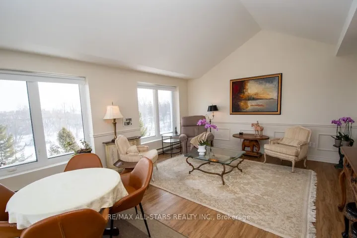 +"PublicRemarks": "Sun-filled with great views! Ideally situated, this corner-unit penthouse offers one of the best locations in the building! With 2 bedrooms & 2 full washrooms, this lovely unit also features 11' vaulted ceilings in almost all rooms, making the 1135 sq/ft feel even more spacious & airy. The bright living/dining area offers both patio doors leading to a spacious balcony with sunrise & river views, as well as a wall of large windows overlooking the river, boat docking area, and the beautiful, historic Rivermill clubhouse. The large primary bedroom has a walk-in closet and a full ensuite with soaker tub & separate step-in shower. There is updated flooring in the living room, kitchen and hallway, newer vanities in both washrooms, and a fresh, neutral paint colour throughout. All utilities are included in the monthly condo fees, as well as the use of the lovely landscaped grounds, the heated indoor pool & saunas, the billiard and exercise rooms, the tennis court, many social/gathering rooms, and the lovely rooftop patio overlooking the river. This building is pet friendly (with restrictions), and one underground parking space and a storage locker are included with this unit. Additional parking and a boat slip are available for very reasonable additional fees. Everything you could want in a secure, low-maintenance lifestyle can be found here!"
