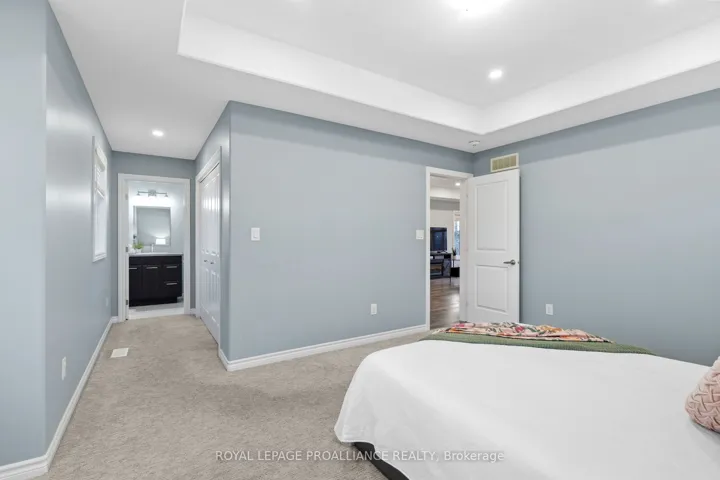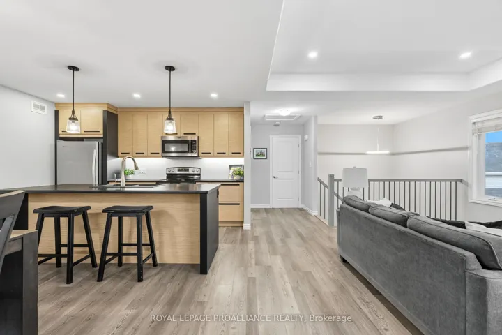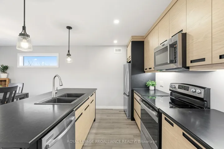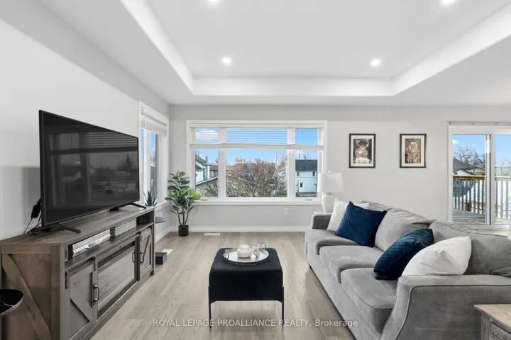 +"PublicRemarks": "Modern 5 year old home built by Frontier Homes-still under Tarion Warranty located by the Bay of Quinte and the Waterfront Trail. Feels like Condo-Living but is actually a fully detached and fenced two-storey home. Perfect for dog-walking, running, kayaking or boating at Meyers Pier. Enjoy this modern layout with 3-bedrooms, 3 bathrooms and a bright trendy open-concept design. Builder upgrades in kitchen, dining, and primary suite on the upper level like tray ceilings, pot lighting, kitchen pull-outs, and large picture windows that flood your living space with natural light. You will love the sleek natural kitchen cabinetry with walk out to deck for waterfront views with your morning coffee. There are two additional bedrooms (or gym & office), one with a walk-out to the large fenced backyard plus a 4-piece bathroom, and laundry room conveniently located on the main level. All living space is above grade. (no basement). Perfectly positioned in Belleville's south-end waterfront community, with views of the Bay of Quinte, a public boat launch, the Waterfront Trail, Meyers Pier, Victoria Harbour, and walking distance to the area's finest restaurants, and downtown. Quick access to the 401. Ideal for busy professionals, couples or families with teens seeking a move-in-ready, virtually new, maintenance-free home, walkable community, and a lock-and-leave lifestyle. Enjoy a waterfront lifestyle that is close to everything with great value for years to come. This home is sure to impress!"