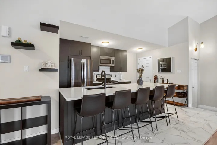 +"PublicRemarks": "Rarely offered top-floor 2-bedroom, 2-bathroom condominium in sought-after Kanata South. This fully renovated unit is filled with natural light, vaulted ceiling, and features a modern open-concept layout with a fully renewed kitchen, complete with a large 10-foot quartz island, new cabinetry, and contemporary finishes throughout. The spacious primary bedroom includes a private ensuite, while the second bedroom is ideal for guests, a home office, or family use. Enjoy outdoor living on the oversized balcony with a natural gas hookup-perfect for BBQs and entertaining. Located in a well-managed condominium complex, this move-in-ready apartment offers a rare opportunity to own a beautifully updated unit in a prime location close to parks, shopping, transit, and all amenities. Check out the attachment for the list of improvements!"