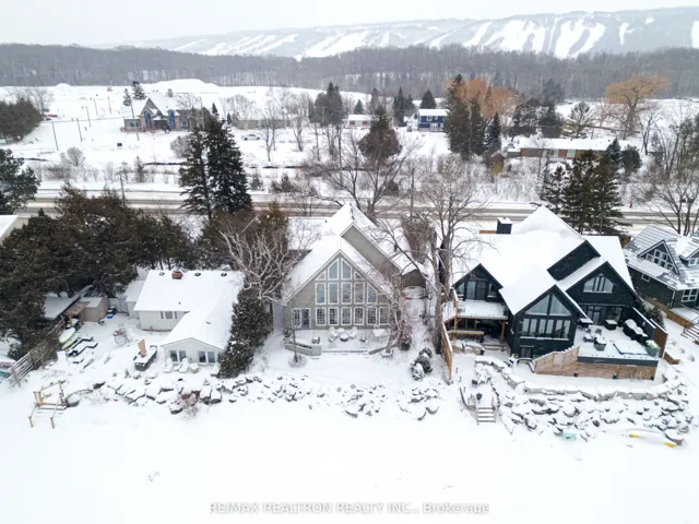+"PublicRemarks": "Minutes to the hill and front row to Georgian Bay: welcome to 209733 Highway 26 in the Blue Mountains. This is a true four-season waterfront retreat - 3 bedrooms, 2 bathrooms, with 60 ft of private shoreline and postcard-worthy views in every season.The home's heart is the double-height great room, where vaulted wood ceilings and floor-to-ceiling windows pull the bay right into the space. It's dramatic in the best way. Bright, warm, and designed around the priceless view. A cozy fireplace anchors the room, making it just as inviting after a winter ski day as it is on a summer evening.The kitchen connects naturally to the main living space and is built for real entertaining, with timeless finishes like granite countertops, a breakfast bar, quality stainless appliances - including a gas stove - tons of pantry storage, plus the twinkling lights of the ski hills right outside your window. The layout is just as thoughtful: a main-floor primary suite gives you the ease of bungalow living, while two additional bedrooms upstairs offer space for guests or family without compromising privacy. Need a work-from-home setup or a quiet retreat? The main-floor office, with French doors, post-and-beam details, and a walkout to the deck is the kind of nook you want to use. Upstairs, the loft-style living area with skylights adds flexible space for movie nights, reading, or an additional office. Notable updates include a ~4-year-old roof and a smart thermostat. And the location seals it: one of Ontario's most dynamic outdoor communities, with skiing, trails, cycling, golf, markets, dining, and year-round events - right at your doorstep."