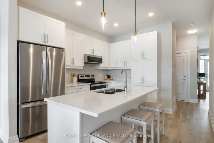 +"PublicRemarks": "TAKE ADVANTAGE OF BUILDER PROMO PRICING ON THIS UNIT! Interior finishes are being completed now allowing for a quick closing!! BONUS!! The second floor is being finished with luxury vinyl plank instead of carpet!! Werrington Homes is excited to announce the launch of their newest project The North Woods in the desirable Hyde Park community of Northwest London. The project consists of 45 two-storey contemporary townhomes priced from the mid $500's. With the modern family & purchaser in mind, the builder has created 3 thoughtfully designed floorplans. The end units known as "The White Oak", offers 1686 sq ft above grade, 3 bedrooms, 2.5 bathrooms & a single car garage. The interior units known as "The Black Cedar" offers 1628 sq ft above grade with 2 bed or 3 bed configurations, 2.5 bathrooms & a single car garage. The basements have the option of being finished by the builder to include an additional BEDROOM, REC ROOM & FULL BATH! As standard, each home will be built with brick, hardboard and vinyl exteriors, 9 ft ceilings on the main, luxury vinyl plank flooring on the main and upper floor, quartz counters, second floor laundry, paver stone drive and walkways, ample pot lights, tremendous storage space & a 4-piece master ensuite complete with tile & glass shower & double sinks! The North Woods location is second to none with so many amenities all within walking distance! Great restaurants, smart centres, walking trails, mins from Western University & directly on transit routes! Low monthly fee ($77 approx.) to cover common elements of the development (green space, snow removal on the private road, etc).This listing represents "The Black Cedar" interior unit base price 3 bedroom plan. *images are from a prreviously completed, Black Cedar 3 bedroom plan, and may show optional upgraded features not included*"