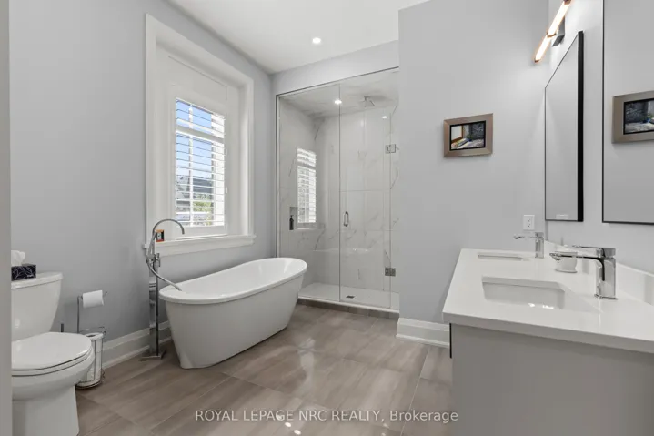 A rare offering in prestigious Canboro Hills, this end unit bungaloft townhome by De Haan Homes delivers over 2,400 sq. ft. of refined living space where every detail has been designed with intention. From its striking stone and stucco exterior to the soaring ceilings and expansive windows inside, the home captures a sense of elegance and comfort at once.The great room is an impressive centrepiece, showcasing vaulted ceilings, a sleek gas fireplace, and custom millwork that add to its sophistication. Glass doors open to a covered terrace, blending indoor and outdoor living for effortless entertaining or quiet retreat.The chefs kitchen combines beauty and function with quartz surfaces, bespoke cabinetry, premium appliances, and an oversized island that invites gatherings. The adjoining dining area flows seamlessly, creating a space tailored for both everyday living and special occasions.The main floor primary suite offers the privacy of a boutique hotel with a spa-inspired ensuite featuring a freestanding tub, glass shower, and double vanity, complemented by a custom walk-in closet. A second bedroom, powder room, and designer laundry with direct garage access complete the main level. Upstairs, the open loft is ideal for a lounge or office, while a third bedroom with its own ensuite ensures family and guests experience comfort and luxury.Life in Canboro Hills is enhanced by maintenance-free living, with lawn care and snow removal included with a monthly fee of $415/mth. Situated in the heart of Fonthill, celebrated for its rolling hills, boutique shops, acclaimed restaurants, championship golf, and proximity to Niagara’s wine country this residence offers an unparalleled lifestyle in one of Ontarios most sought-after communities.