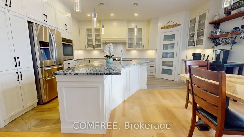+"PublicRemarks": "Welcome to a custom luxury residence, located in the highly desirable Mineola neighborhood. This property is a masterpiece of architectural innovation & modern luxury. 19 Ft Ceiling Foyer with striking white oak staircase w/glass railings, sets the tone for the refined sophistication that flows throughout the home. High performance tripple-pane tilt & turn aluminum European windows flood the interior with natural light, accentuating the open-concept layout that is both functional & visually stunning. The spacious living & dining areas are designed for entertaining & features a sleek gas fireplace, 10 Ft Ceilings & designer lighting add warmth and ambiance. At the heart of the home is a dream kitchen custom designed with style and functionality. It is outfitted w/premium quartz countertops & quartz backsplash with an impressive quartz waterfall island & high-end appliances. A butlers pantry offers additional prep space and custom-built storage. The extended cabinetry adds a refined touch, w/integrated under cabinets lighting.The kitchen overlooks a modern Family room with a 16 Ft ceiling and elegant gas fireplace with floor to ceiling Italian tiles. Premium quality engineered hardwood flooring on main and second floor. The primary suite is a private retreat, boasting a large balcony, a spa-inspired ensuite complete with a freestanding soaking tub, oversized rainfall shower, and dual vanity. A boutique-style walk-in closet with LED-lit custom cabinetry provides ample storage. The additional bedrooms are equally well-appointed, each featuring large windows, custom closets, and access to designer bathrooms w/heated floors & premium fixtures. Finished basement with premium vinyl heated floors and pot lights offers a large recreation room, gym, office/bedroom, bathroom cold cellar/wine room. Walk-Out from the basement takes you to a beautifly landscaped, fenced backyard with large stone patio. Great location, close to Lake Ontario, parks, and Port Credit Village."