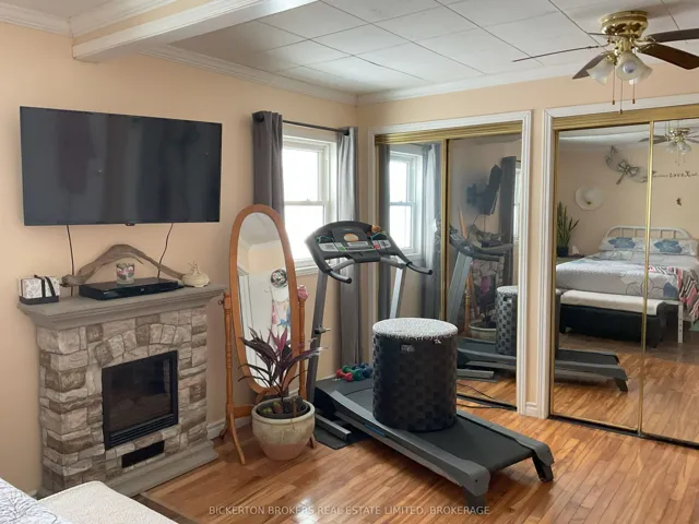 +"PublicRemarks": "Welcome home to this charming semi-detached two-bedroom bungalow, offering a bright and open-concept kitchen and living room filled with natural light. Hardwood floors highlight the living room, with durable laminate flooring throughout the rest of the home. All appliances are included with an option to purchase existing furnishings for a truly move-in-ready experience.The home features a four-piece bathroom, washer and dryer, electric baseboard heating, and two electric fireplaces for added comfort and ambiance. The large spacious primary bedroom offers an abundance of storage with multiple closets for extra storage.A 200-amp electrical service supplies both the home and the large detached garage, which has been converted into a three-season family or games room-perfect for extending your living space. The generously sized, private backyard is beautifully landscaped and surrounded by nature, creating a peaceful, country-style setting while still being inside the gates of Gananoque and close to all town amenities."