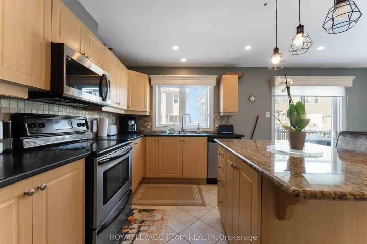 +"PublicRemarks": "Welcome to 161 Harmattan Drive! Bright and spacious 3-storey, 3-bedroom end-unit townhome offering a double car garage and perfectly situated on a quiet street. The main level offers a versatile recreation room and convenient laundry. The second level features a sun-filled kitchen with ample cabinetry, granite island countertops, pantry, and pot lighting, along with an open living/dining area. Step out to the large balcony off the kitchen, complete with a gas BBQ hookup-perfect for entertaining. The upper level includes three generously sized bedrooms, a full main bath, and a primary suite with walk-in closet and ensuite featuring a walk-in shower. Carpet throughout bedrooms and stairs. Easy access to Hwy 417, shopping including Tanger Outlets, entertainment and sports at the Canadian Tire Centre, and nearby recreation & many top-level schools. Come see why you will want to call this home. Book your showing today!"