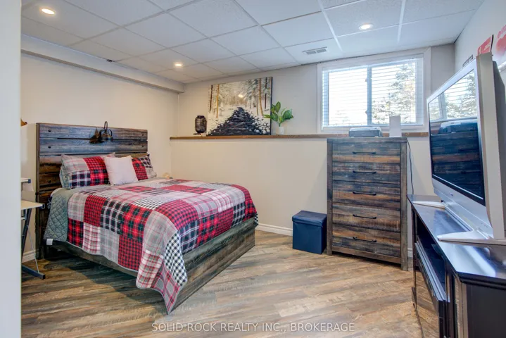 +"PublicRemarks": "Peaceful country living just 15 minutes north of Kingston! This meticulously maintained, 4-bedroom, 3-bath elevated bungalow offers space, privacy, and modern comfort. Bright open-concept main level with large windows, quartz kitchen countertops and backsplash, and brand-new hardwood floors throughout. French doors off the dining area lead to a spacious deck for easy indoor-outdoor living, while a custom fireplace adds warmth to the living room. The main floor includes 3 bedrooms, including a primary with ensuite and an additional stylish full bathroom. The fully finished lower level features a large rec room with fireplace, 4th bedroom, and a full bath with walk-in shower - ideal for guests or extended family. Pool table included. Bonus: impressive 36' x 60' Quonset hut perfect for a workshop, oversized garage, storage, or home-based business. Move-in ready with room to live, work, and play."