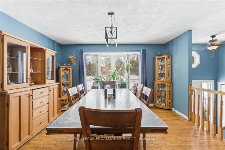+"PublicRemarks": "Set on a picturesque country lot, this raised bungalow at 1442 Quin-Mo-Lac Road offers comfortable rural living just outside the town of Tweed. The home features a generous layout with seven bedrooms, making it well-suited for larger families, home-based living, or those seeking extra space. The main living areas are bright and functional, with a formal dining room, a well-equipped kitchen, a cozy living room and bonus indoor man-cave! Heating is provided by propane forced air and 2 wood stoves for flexibility, complemented by a metal roof and concrete foundation. The attached garage adds convenience and ample storage. Outside, enjoy landscaped grounds, established gardens, an above-ground pool (2022), and a covered deck with hot tub (2022). A peaceful creek borders part of the property, enhancing the natural setting."