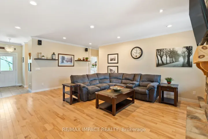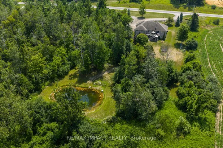 +"PublicRemarks": "Impressive custom brick/stone bungalow, boasting over 2500 sf of luxurious living space on the main level plus full WALKOUT basement and attached heated 3-car garage with 2 overhead doors. Nestled on an expansive 1.74 ACRES, this home offers a serene lifestyle with panoramic views overlooking farmlands and the Cavan Hills, complete with a spring-fed POND, ranging from 10-14 ft deep. As you enter the front foyer, there is a convenient den plus the grandeur of a spacious great room, accentuated by a striking stone fireplace and a unique waffle-patterned feature wall. Gleaming hardwood floors flow throughout the home with an abundance of crown mouldings and pot lights. The chef's kitchen is a culinary delight, equipped with stainless steel appliances, a granite countertop, ceramic backsplash, and an island with a veggie sink. The adjacent large dining area opens onto a generous deck, designed with tempered regal glass for unobstructed views of the backyard and fire pit area, ideal for entertaining friends and family. The main floor features 4 well-appointed bedrooms, including a primary suite that includes a walkout to the deck, a luxurious 5-pc ensuite with dual sinks, a separate shower and a whirlpool tub, all complemented by a stylish barn door privacy feature. The primary suite also boasts a walk-in closet with built-in shelving for optimal organization. Two of the additional bedrooms share a convenient Jack and Jill bathroom, while a third bedroom is situated near the 2-pc powder room. The walkout basement includes large above-grade windows that flood the space with natural light, a cozy family room complete with an electric infinity fireplace and a dry bar, 3-pc washroom and a huge open area with extra plumbing rough-ins, perfect for customization. The basement also features ample storage, making it an excellent option for a multi-generational living arrangement with its separate entrances and walkout basement."