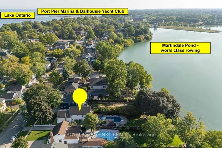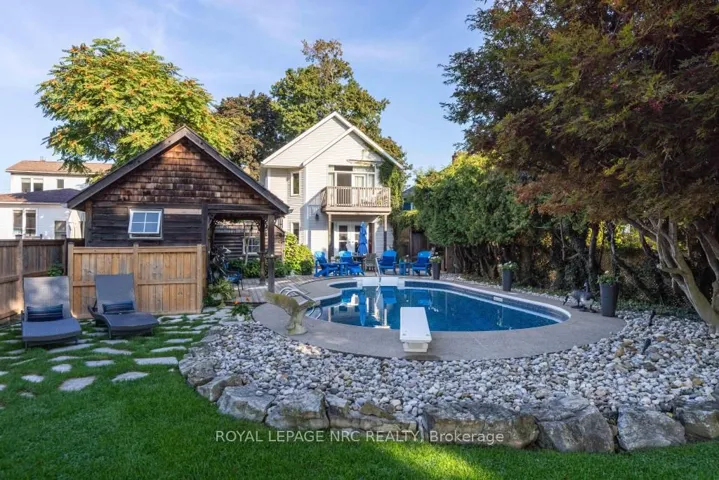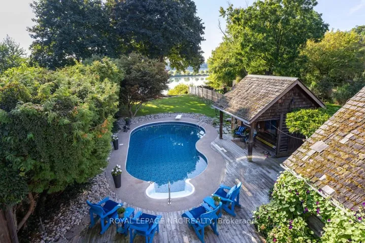 +"PublicRemarks": "Only offered twice in 40 years, this is a rare and romantic slice of Port Dalhousie, tucked behind a white picket fence and framed by majestic century trees. This exceptional waterfront property stretches to the shores of Martindale Pond, offering serenity, privacy, and natural beauty rarely found within city limits. The backyard is a true retreat, featuring an inground pool, charming cabana, lush gardens, and a private dock at the water's edge. Enjoy morning coffee, sunset cocktails, or front-row views of world-class rowing from your own shoreline. Inside, the home blends historic charm with a thoughtfully designed 2-storey, 1,680 sq ft addition, creating a warm and welcoming space ideal for gathering. The original 950 sq ft home showcases custom millwork, a beamed dining room ceiling, and cozy character, while the 2010 addition offers a stunning kitchen, pond-view great room, and a spectacular primary suite with balcony, vaulted ceiling, gas fireplace, and breathtaking outlook. Two staircases enhance flow and flexibility. Skylit bedrooms, 3 gas fireplaces, and a layout that allows for a separate guest retreat or private children's wing add versatility. A poured concrete basement with 9' ceilings offers outstanding potential for additional finished living space, while a Generac generator, updated mechanicals, and meticulous care throughout provide comfort and peace of mind. Port Dalhousie is a prestigious lakeside enclave known for sandy beaches, private marinas, waterfront trails, acclaimed dining, and the world-famous Henley Island rowing course. Minutes to wineries, golf, and highway access, this is one of Niagara's most exclusive lifestyle communities."