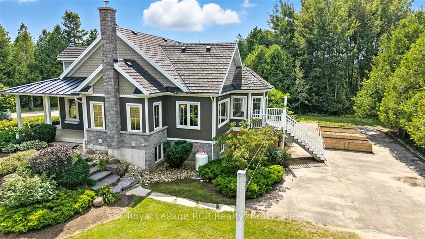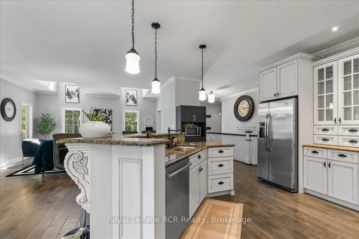 +"PublicRemarks": "PROPERTY TAX ISSUE CORRECTED. On 10 acres in Wellington North, this executive stone bungalow combines luxury, comfort, and country living. The custom kitchen with pantry flows into inviting family spaces, while a sunroom with a walkout deck overlooks the landscaped yard and wooded lot. The spacious primary suite features a walk-in closet and spa-inspired ensuite, and the finished lower level adds a rec room, bar, and extra bedrooms. An oversized garage, circular driveway, and energy-efficient geothermal heating complete this exceptional property. Don't miss your chance to own this executive home. Arrange a tour today!"