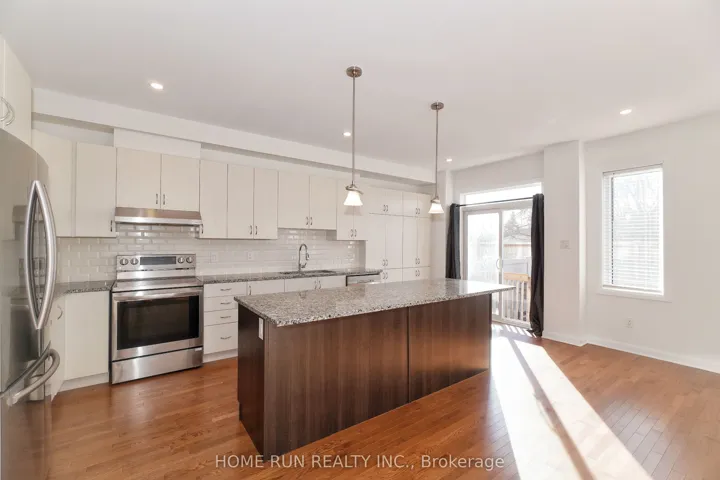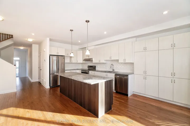 +"PublicRemarks": "Ultimate Privacy with NO BACK neighbours! Rarely offered 4 bedrooms + 4 bathrooms END-UNIT townhouse in the highly sought-after Heritage Park area of Barrhaven. Freshly painted throughout and loaded with upgrades, this home offers hardwood flooring, a functional mudroom, and a fully finished lower level. The main floor welcomes you with a spacious foyer leading to a formal dining room and a sun-filled great room. Oversized windows showcase serene views of mature trees, providing exceptional privacy and a beautiful view. Elegant hardwood floors, pot lights, and updated fixtures enhance the home's modern and inviting feel. To the right of the main level is the chef-inspired kitchen, featuring upgraded extended cabinetry, an oversized centre island with breakfast bar, stainless steel appliances, and a generous eat-in area perfect for casual family dining. The upper level offers 4 well-proportioned bedrooms, ideal for large families. Whether used as bedrooms or home offices, these flexible spaces will adapt to your family's needs. The primary bedroom serves as a true retreat, complete with a walk-in closet and private ensuite. A second full bathroom and a convenient upper-level laundry room complete this bright and airy floor. The fully finished basement provides additional living space-perfect for a home gym, office, or entertainment area-and includes an extra bathroom. Step outside to your private backyard oasis, featuring a newly built large deck, surrounded by mature trees and offering complete privacy with no rear neighbours. Located just 5 minutes from Barrhaven Marketplace, Costco, Highway 416, and within the school zone of top-rated John Mc Crae Secondary School. Walking distance to parks and public transit. A perfect blend of space, privacy, and convenience-don't miss this exceptional home!"