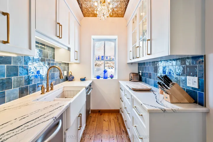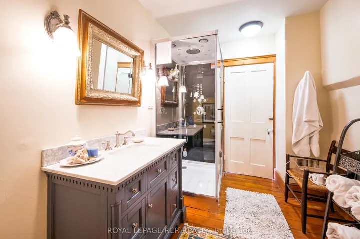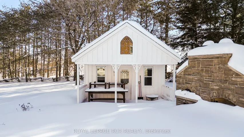+"PublicRemarks": "There is an unmistakable sense of romance & quiet artistry woven into this home, a feeling that settles in gently and stays. Painted by Trisha Romance in '83, the property carries a warmth & softness that feels timeless, as though it has always belonged to the land it rests on. Natural light fills the interior, reflecting off wide plank flooring & glowing through custom stained glass accents that add colour, character & a subtle sense of wonder to everyday moments. The home unfolds with an easy rhythm, offering spaces that feel both expansive & intimate, designed for connection, creativity, & calm. An expansive family room with fireplace, built in bar & walkout invites both lively gatherings & quiet evenings. The beautifully updated eat in kitchen features a generous island, Jenn Air appliances, & a welcoming breakfast nook, flowing into the formal dining room for effortless entertaining. A private office & a separate living room with fireplace & walkout offer peaceful retreats, while main floor laundry & a sixth bed add flexibility to daily life. Upstairs, five beds provide space to gather & unwind, including a serene primary suite with soaker tub, four piece ensuite & walk in cedar closet. Two finished lower levels extend the living space, offering room for recreation, hobbies, or tucked away escapes. Outdoors, the lifestyle truly shines. An inground pool is paired with a pool house that also serves as a charming bunkie, while a pizza oven sets the scene for long evenings under open skies. The property spans over 22 acres, with 19 acres forested & enrolled in the Managed Forest Tax Incentive Program, creating privacy & a deep connection to nature. A classic barn with two stalls, two paddocks, equipped chicken coops, an attached three car garage & a detached workshop with hydro complete this refined rural offering. This is a place where art, nature & daily life intertwine, inviting you to slow down, breathe deeply & imagine a life shaped by beauty & quiet luxury!!!"