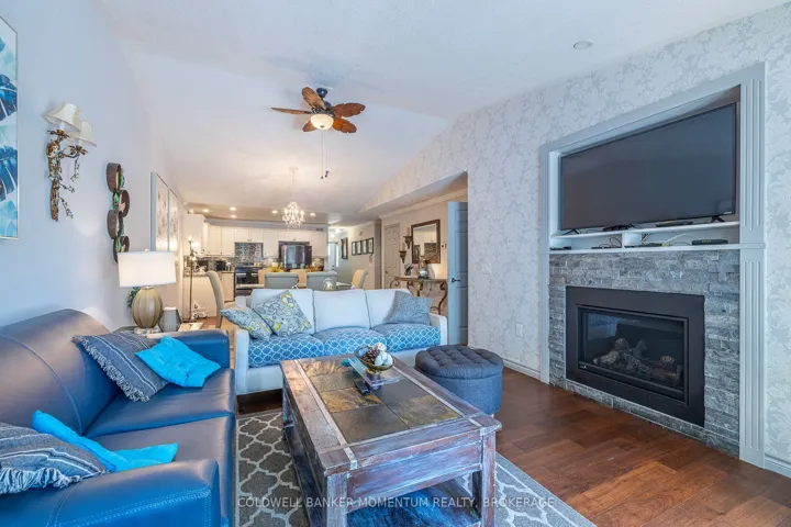 +"PublicRemarks": "Your Dream Retirement Awaits! Imagine waking up every morning in your own charming bungalow town, surrounded by the tranquility of Cherry Hill's beautiful community. This stunning 1200 sq ft home is designed with your comfort and convenience in mind, featuring A covered front porch to enjoy your morning coffee. Spacious foyer to make a great first impression. Attached garage with inside entry and access to crawl space. Convenient on-demand water heater. Large kitchen with Central island for food prep and socializing. Glass backsplash and stainless steel appliances. Pots and pans drawers and loads of storage. Dining room with Console and beautiful crystal chandelier Dining room table with glass top and 6 chairs. Cathedral ceiling over dining room and living room for an airy feel. Living room with Gas fireplace with custom stone facade. Slider patio doors to composite private back deck. Hardwood floors for warmth and elegance. This 1200 sq ft bungalow town boasts 2 full bathrooms, including a 4-piece main bathroom and a 3-piece ensuite with walk-in shower, both with ceramic floors. The primary bedroom is a retreat in itself, featuring: Large walk-in closet Additional closet for extra storage Alcove for your dresser, 3-piece ensuite bathroom with walk-in shower. With everything on one floor, this move-in ready bungalow town is perfect for retirement living. With oodles of activities in the Club House(equipped with Kitchen, Library, Pool/Billiard Room, Craft room, Exercise room, Patio with BBQ and exterior Salt Water Pool!) Don't miss out on this incredible opportunity to make Cherry Hill your home! Call me today to schedule a personal showing and make this dream a reality!"