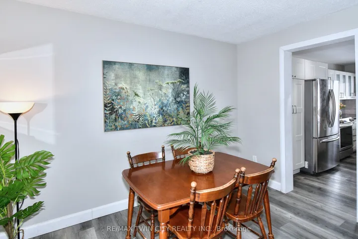 +"PublicRemarks": "Exceptionally well maintained 3-bedroom freehold townhouse, no condo fees, perfect for first-time buyers looking to enter the market. This bright and spacious home features a large eat-in kitchen with ample cupboards and counter space, updated in 2022 along with new LVP flooring on the main-floor, refurbished hardwood on the second level, and new fridge and dishwasher. Hardwood floors run throughout the main and upper levels, and the living room offers a walk-out to a deck and privacy-fenced yard. The lower level includes a mostly finished rec room and utility room. Recent 2025 updates include new rear yard window and door trim and new eaves troughs. Many additional extras-don't miss this opportunity."