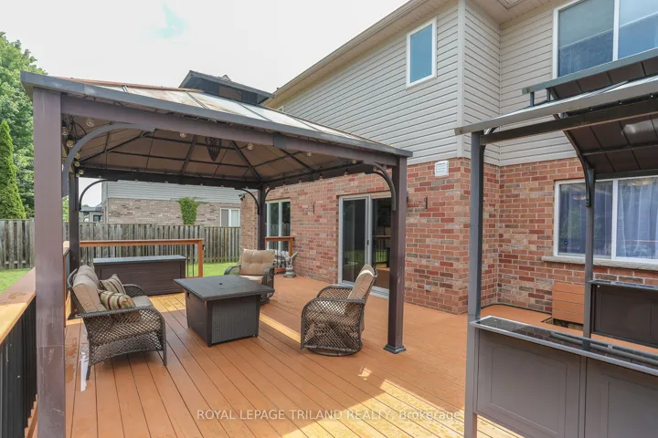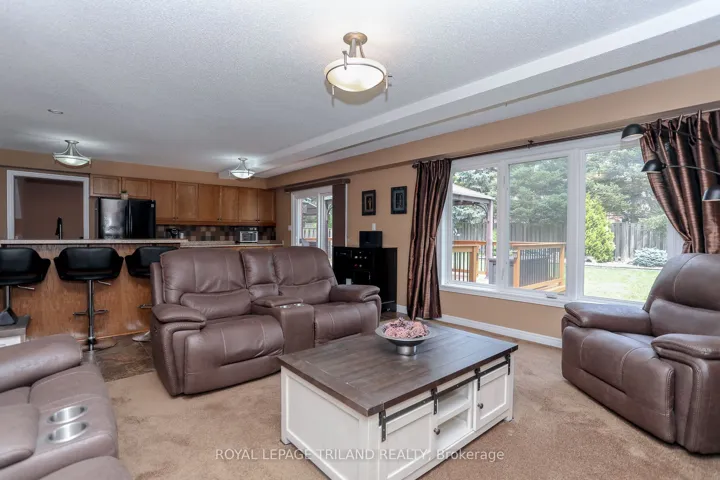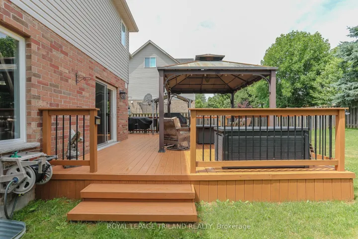 +"PublicRemarks": "Welcome to this impeccably maintained and spacious Byron residence, ideally situated just steps from Byron Sports Park and a short drive to Boler Mountain. The main floor offers a formal living room with a striking cathedral ceiling and a separate dining room, perfect for hosting family gatherings or formal dinners. At the heart of the home, the open-concept great room features a generous kitchen, dining area, and a family room with a gas fireplace, creating a seamless space for both everyday living and entertaining. A convenient powder room, main floor laundry, and inside access to a triple-car garage with a professionally installed EV charger add to the functionality of this level. Upstairs, a grand open staircase leads to four spacious bedrooms, including a well-appointed primary suite with a walk-in closet and private ensuite. All second floor bedroom window replaced this past summer. The fully finished lower level offers exceptional versatility, featuring a large recreation room, two additional bedrooms or home offices, a full bathroom, and a cold storage room. Outdoors, the beautifully landscaped, pool-sized backyard is an inviting retreat, complete with a deck (installed in 2020), gazebo, full fencing, and a natural gas BBQ hookup. Additional highlights include: All appliances, central vac, gazebo, and BBQ cover included. Shingles replaced in 2020 with a 50-year transferable warranty. House was recently upgraded to Hi speed fibre optic internet. Surround sound speakers in the basement (negotiable). With its thoughtful layout, numerous updates, and prime location, this property is an exceptional opportunity for discerning buyers. Closing is flexible!"